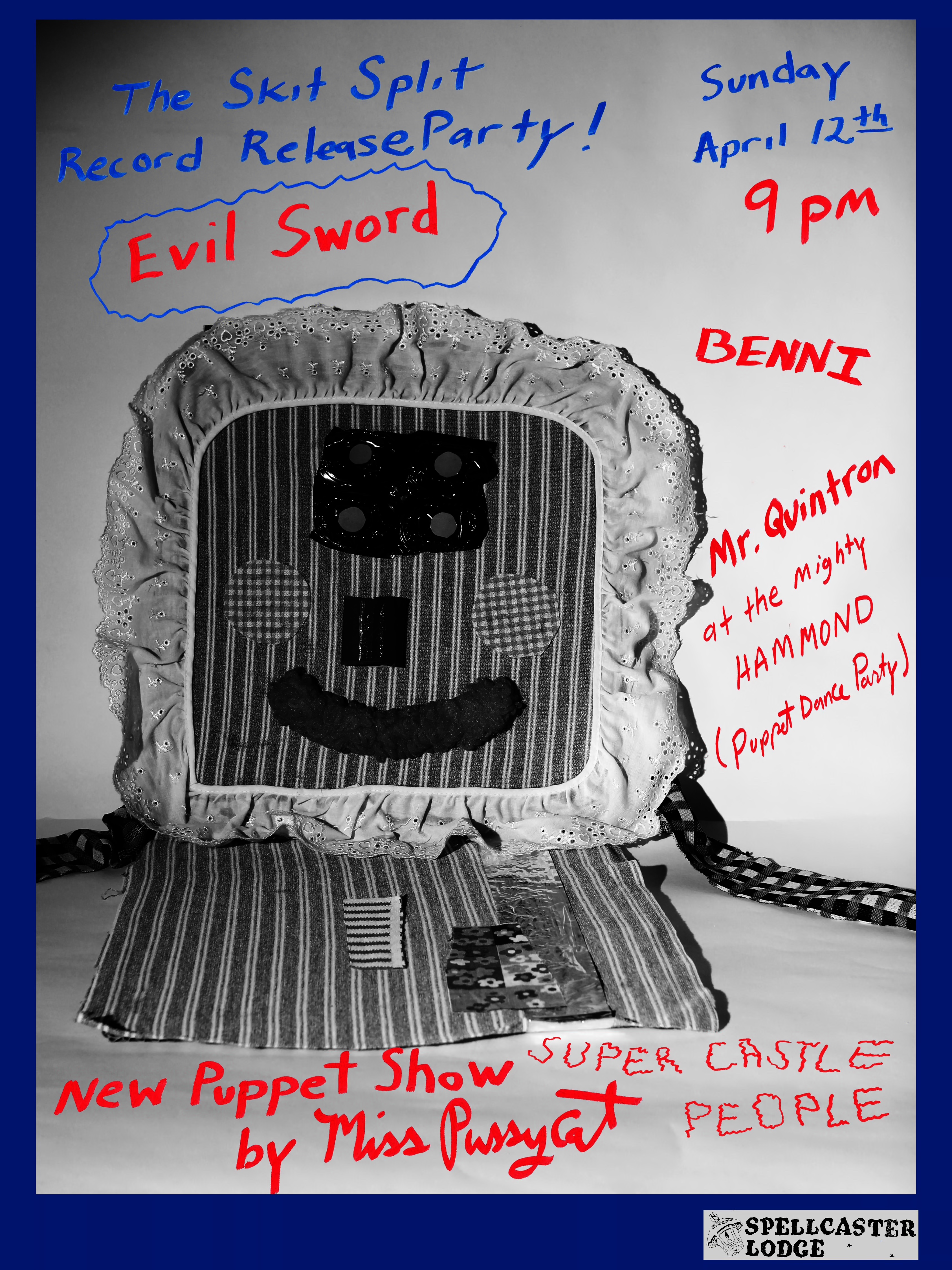 Magic Pictures and Rhinestone Records are thrilled to present THE SKIT SPLIT! This is no ordinary record, on this double EP Philadelphia's preeminent papier-mâché rock band, Evil Sword, have joined forces with Miss Pussycat, the legendary puppeteer from New Orleans, to take you on two sides of fantastic adventure.